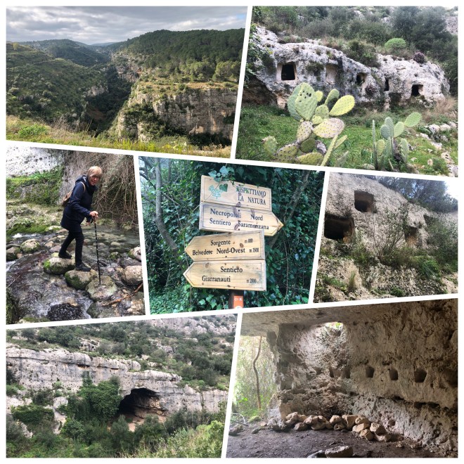Ein kleines Highlight wird eine Wanderung durch ein Naturschutzgebiet, in dem sich die Nekropolen von Pantalica verstecken. In den tief einge-schnittenen Schluchten der Flüsse Anapo und Calcinara, ca. 35 km westlich von Siracusa/Syrakus, befinden sich über 5000 in den Fels geschlagene Kammergräber aus der späten sizilischen Bronzezeit und der frühen Eisenzeit. Diese Höhlen wurden ca. im 13. Jh. v. Chr. angelegt bzw. ausgebaut und als Grabstätten genutzt. In den ersten Jahrhunderten n. Chr. nutzte man sie als geschützte Behausung oder baute sie zu Kapellen um. Die gesamte Anlage zählt seit 2005 zum Unesco Weltkulturerbe.