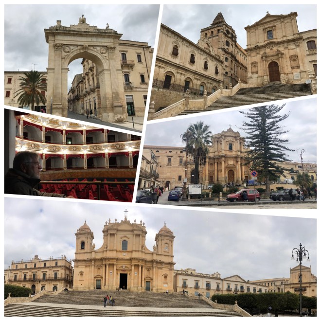 Einen Lichtblick gibt es im Hinterland der Ostküste, es ist der Besuch der Stadt Noto. Noto ist ein Insidertipp, ein ruhiger, idyllischer Ort mit vielen beeindruckenden Gebäuden im Barockstil. Diese wurden nach einem Erdbeben 1693, das Noto wie viele andere Städte und Dörfer im Süden Siziliens völlig zerstörte, neu errichtet. Bevor die Kleinstadt zum Weltkulturerbe der Menschheit gezählt wurde, war Noto weitestgehend unbekannt. Seitdem entdecken zunehmend die Größen aus Kunst und Unterhaltung den Ort mit seinen vielfältigen Räumlichkeiten. Wir waren beeindruckt von den imposanten Treppenaufgängen zu bedeutenden Kirchen der Stadt sowie einem Theater, das uns an Berliner Theater zu Beginn des 20. Jahrhunderts erinnerte.