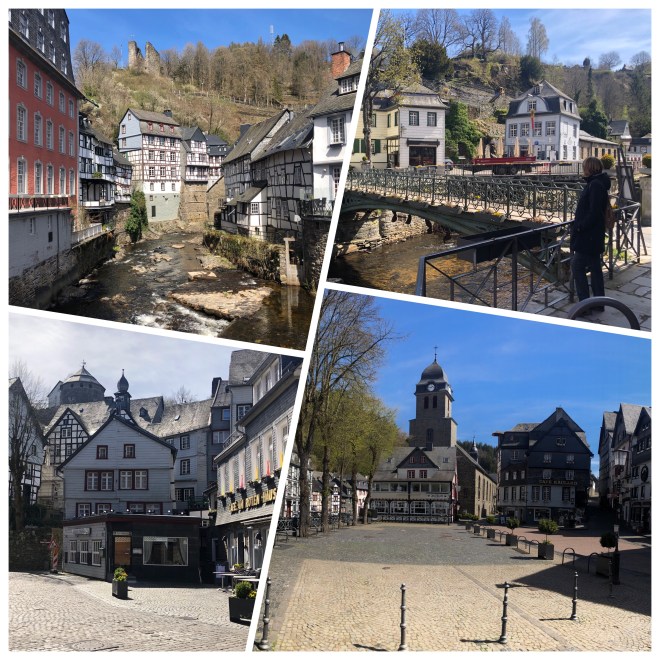Dank unserer Stellplatz-App finden wir einen Platz auf einem Wiesenparkplatz vor einem geschlossenem Hotel bei Manderscheid. Der Hotelbesitzer empfängt uns freundlich, so dass wir hier entspannte Ostertage mit ausgiebigen Spaziergängen in der wunderschönen Eifel verbringen. Das Restaurant bietet zu Ostern Take-away an. Wir entscheiden uns für Forellen, die im Teich neben uns heranwuchsen.