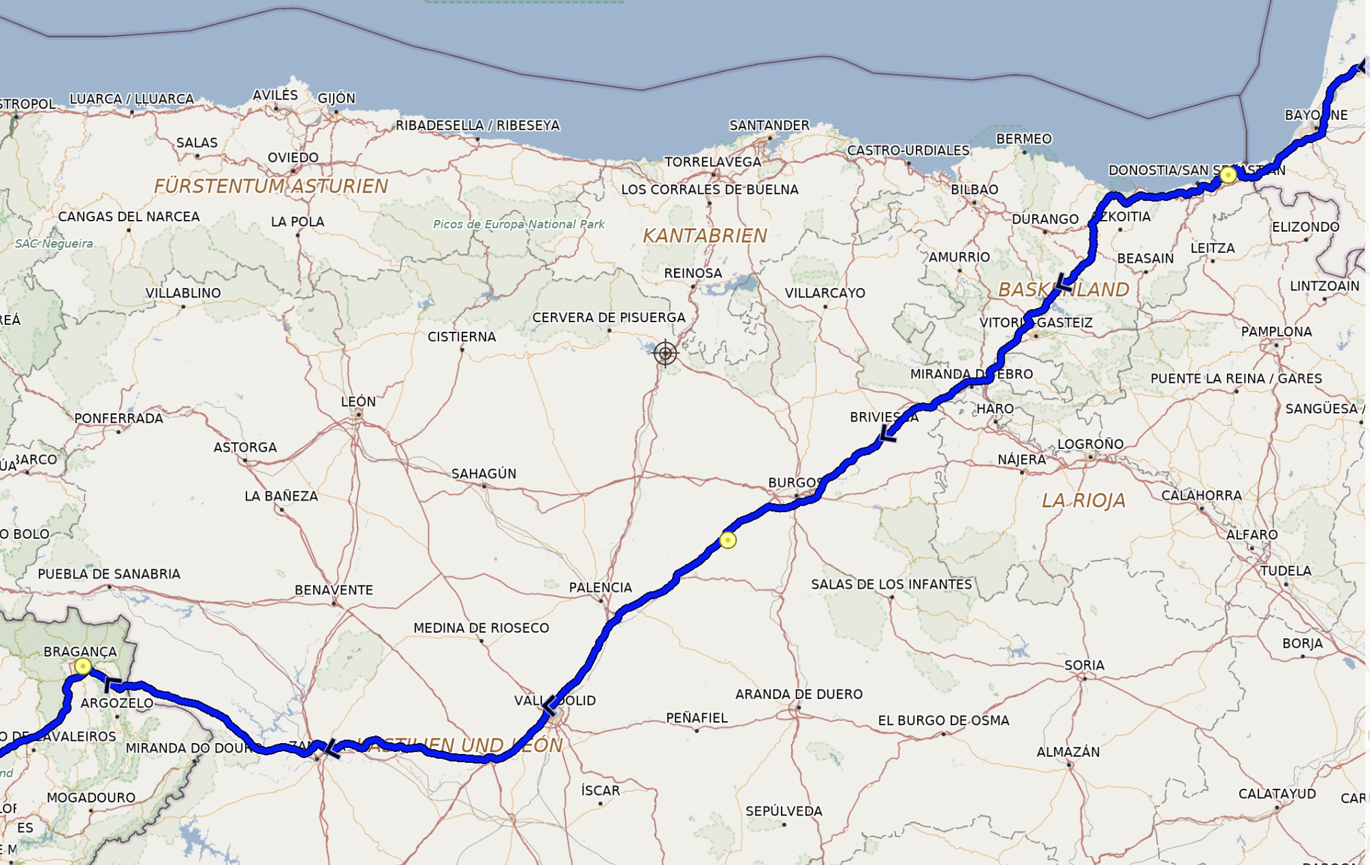 Übrigens wiederholen sich unsere Erfahrungen aus dem Frühjahr: Wir werden weder bei der Einreise nach Spanien noch bei der Einreise nach Portugal kontrolliert. Grenzstationen / Zöllner existieren nicht.