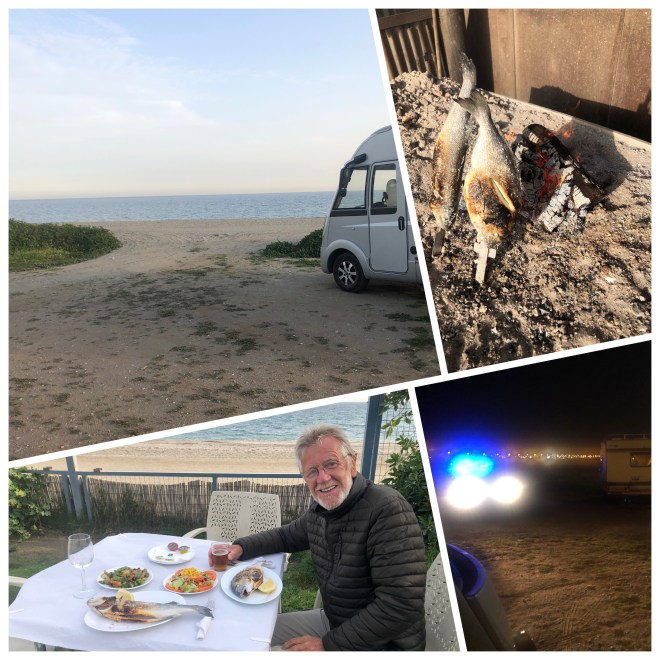 Sonderausstellung im Picasso-MuseumWir verlassen Málaga Richtung Osten. Vor Nerja finden wir einen Strandparkplatz mit geöffneter Höhenbeschränkung. Im nahen Restaurant wird am Abend der Fisch über einer offenen Feuerstelle gegrillt 👍. Natürlich wollen wir länger bleiben. Allerdings klopft in der zweiten Nacht die Polizei bei uns an. Sehr bestimmt werden wir aufgefordert, den Platz zu verlassen. In der Region Nerja sei das Übernachten nur auf offiziellen Stellplätzen erlaubt. Unser Hinweis, dass wir während unseres Restaurantbesuchs mehrere Gläser Wein getrunken haben, beeindruckt die Polizisten nicht. Der nächste Stellplatz sei nur sieben Minuten entfernt und diese kurze Strecke könne man bedenkenlos fahren🤭. Aufgrund unserer eindeutig ablehnenden Haltung gibt man uns zwei Stunden Zeit zum Ausnüchtern. Dann müssten wir aber fahren!