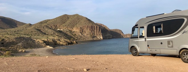 Bei unseren Recherchen im Reiseführer lesen wir jedoch, dass Málaga sich zur neuen Kunstmetropole Spaniens entwickelt hat. Das wundert uns nicht, da doch Pablo Picasso ein Kind der Stadt ist. Kurz entschlossen fahren wir Málaga an und suchen uns auf einem Strandparkplatz einen Übernachtungsplatz. Der Blick aufs Meer ist schön, nur der Verkehr auf der Durchgangsstraße hinter uns trübt etwas die Stimmung.