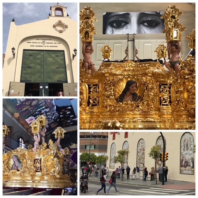 Beeindruckend sind die Prozessionsaltäre in der Basílica de la Esperanza. Diese bis zu 5 Tonnen schweren Altäre werden gewöhnlich in einer Prozession am Gründonnerstag von bis zu 250 Trägern aus verschiedenen christlichen Bruderschaften durch die Straßen von Málaga getragen. Da die Prozessionen 2021 ausfallen, treffen wir vor der Kirche auf eine lange Reihe von Menschen, die auf Einlass warten, um die Altäre zu bestaunen.