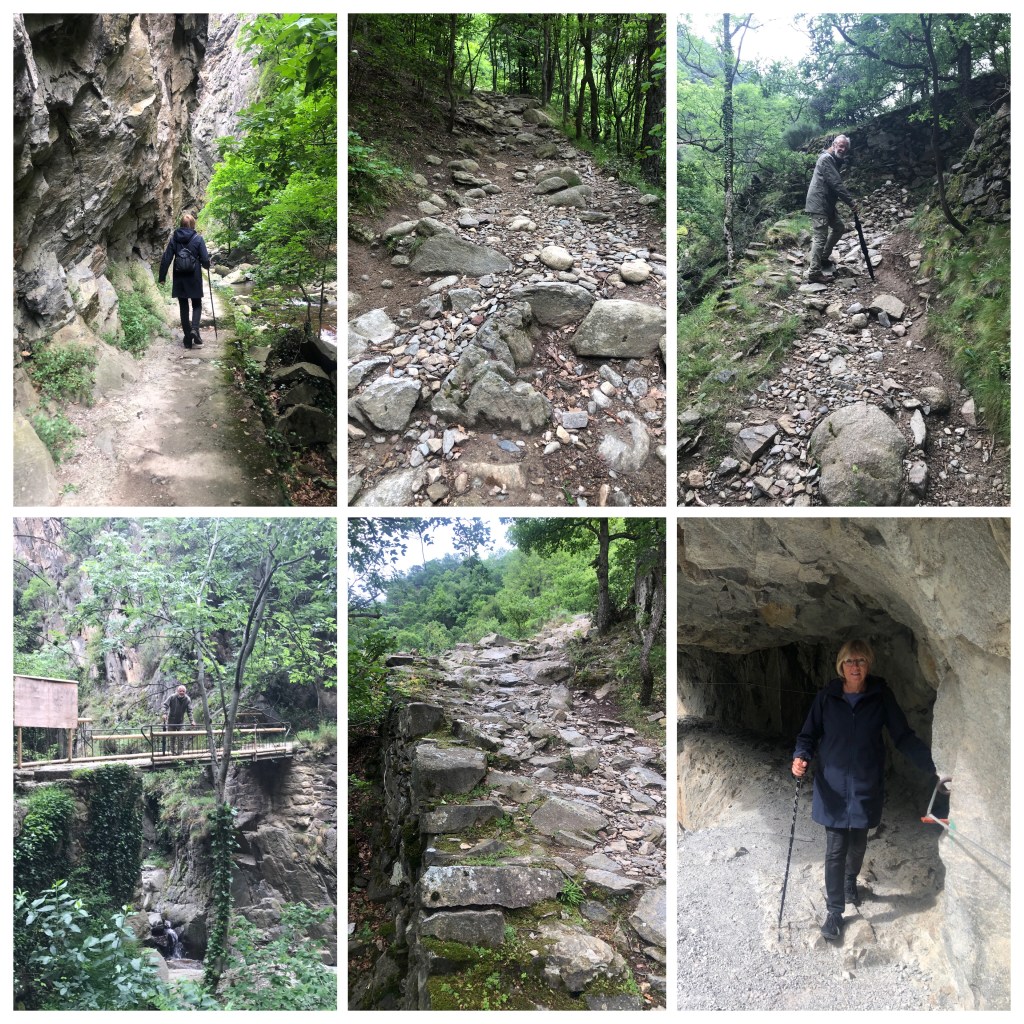 Der Weg beginnt mit einem steilen Aufstieg, bei dem man/frau über große Gesteinsbrocken klettern muss. Mit weichen Knien erreichen wir eine wackelige Hängebrücke, die wir schaukelnd überqueren. Vor 14 Jahren waren wir das erste Mal hier. Da unser Hund Pico diese Brücke nicht erklettern konnte, suchte er sich damals unter unseren bangen Blicken ganz eigenständig einen Weg durch den Fluss. Auf der anderen Seite der Schlucht geht es zurück zum Ausgangspunkt. Hier helfen Leitern und in den Fels gehauene Pfade, die zum Teil mit Drahtseilen gesichert sind. Nach 3,5 Stunden stehen wir ermattet, aber sehr zufrieden vor unserem WoMo. Die Wanderung war abwechslungs-reich und herausfordernd. Belohnt wurden wir immer wieder mit spektakulären Ausblicken in die Schlucht.