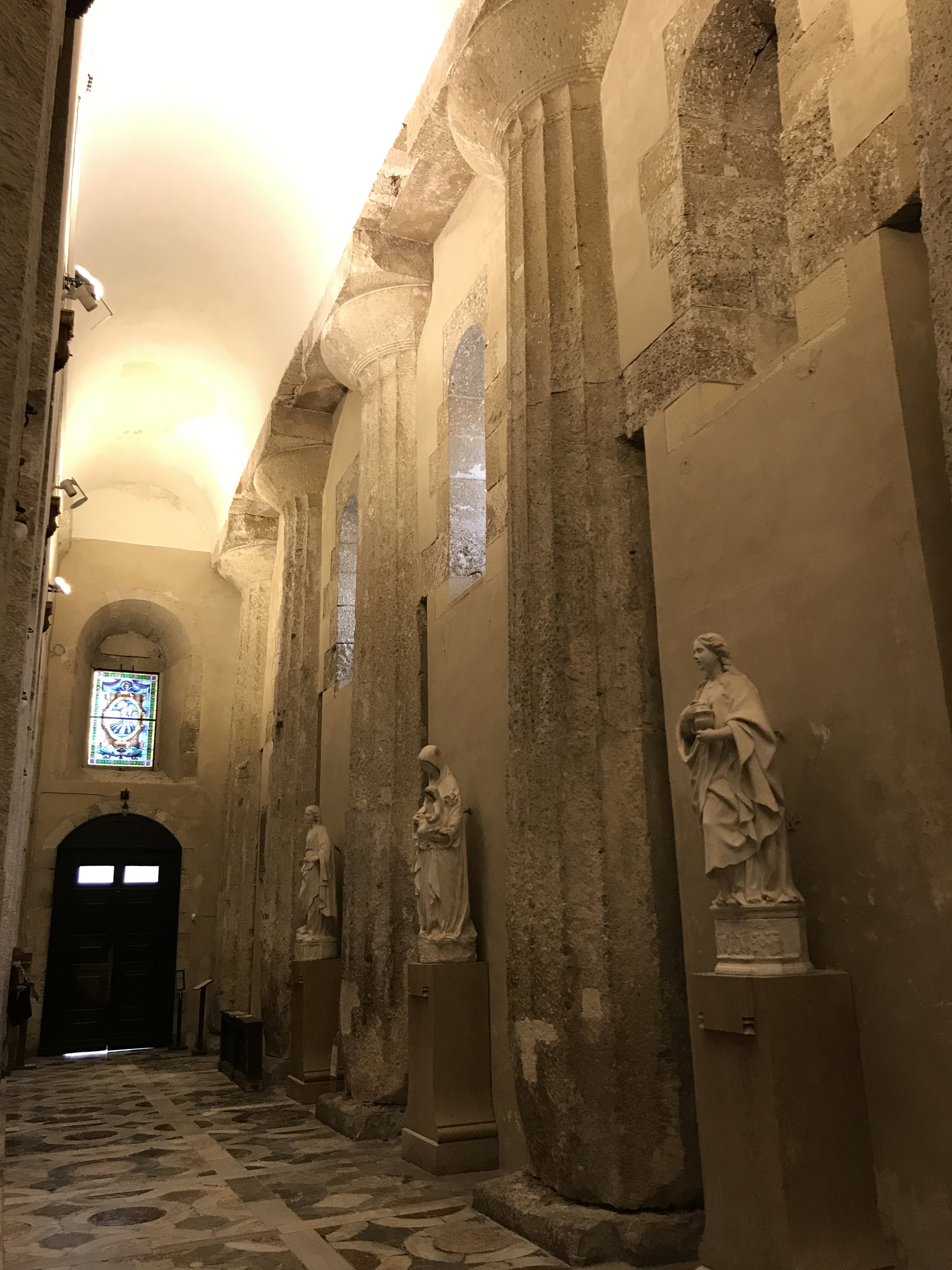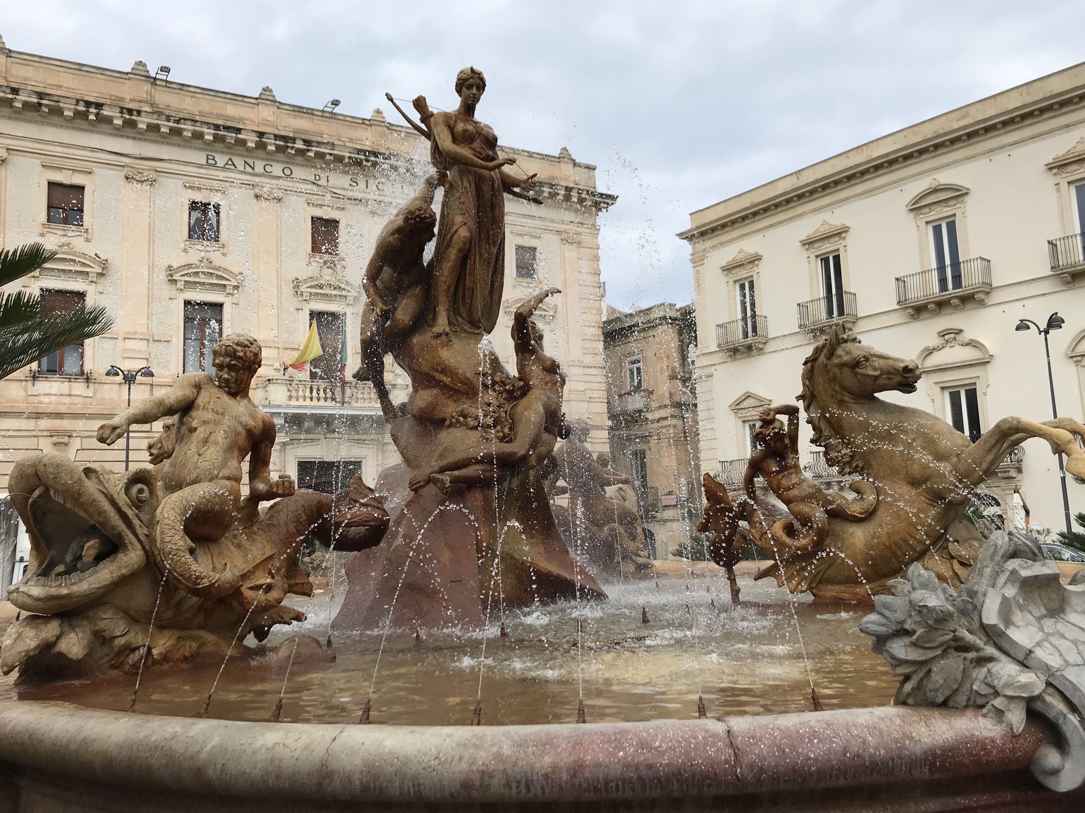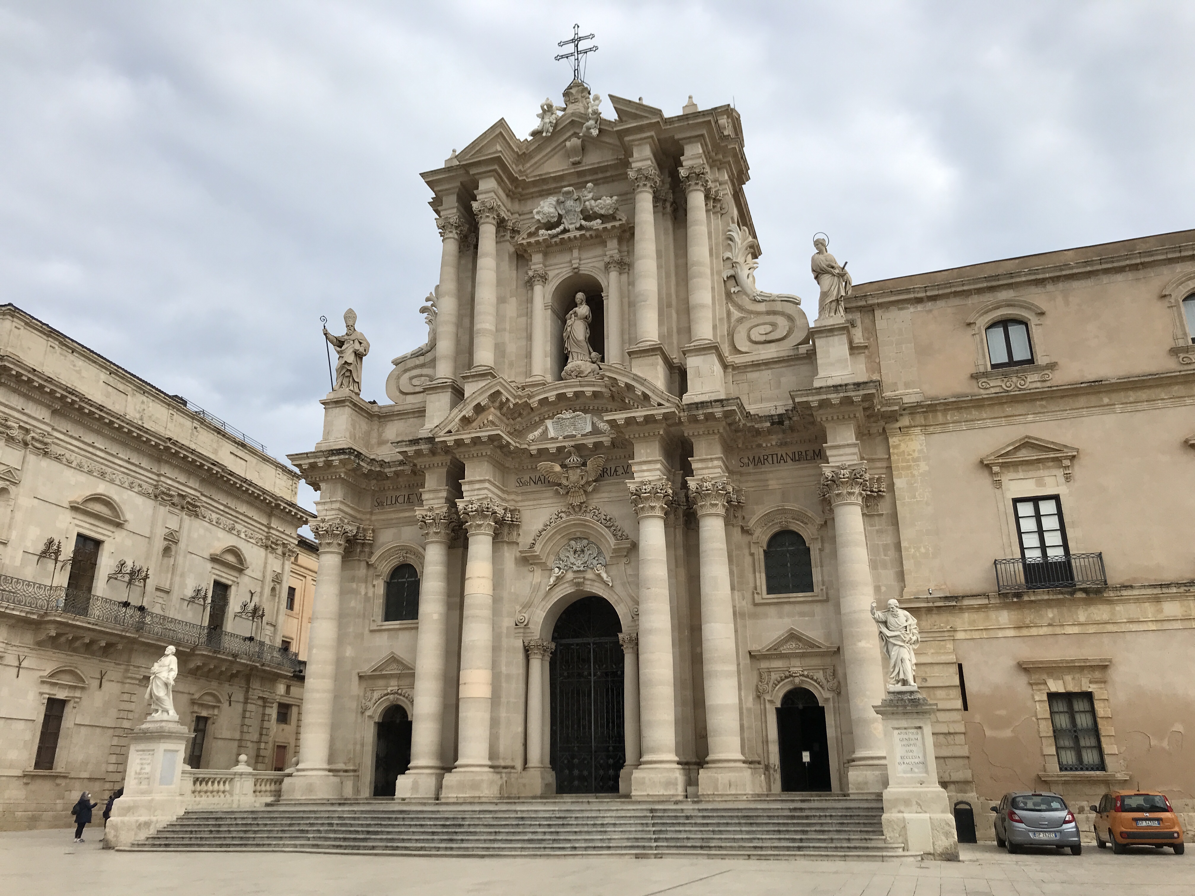 In Siracusa besichtigen wir die Kathedrale Santa Maria delle Colonne. Sie zeigt heute nach Bauten und Umbauten mehrerer Jahrhunderte ein einzigartiges architektonisches Mischbild. Neben den immer noch als solche erkennbar gebliebenen Teilen des antiken Tempels sind Elemente der byzantinischen Baukunst, der normannischen Romanik und des sizilianischen Barocks in ihr vereint. Die Piazza Archimede mit dem Dianabrunnen ist nach dem Dom ein weiterer Anziehungspunkt auf der Halbinsel Ortigia.