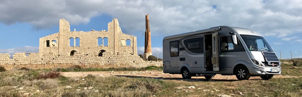 Am 6.1.22 erreichen wir mit der Fähre den Hafen von Messina auf Sizilien. Wir steuern das Küstenstädtchen Torre Faro im NO an. Dort erstehen wir im Büro eines Onlinehändlers ein flexibles Solarmodul (80W), da unsere Solartasche nach einem Jahr ihren Dienst versagt hat. Unser Verschleiß an Reifen, Batterien und Solartechnik ist hoch😯.