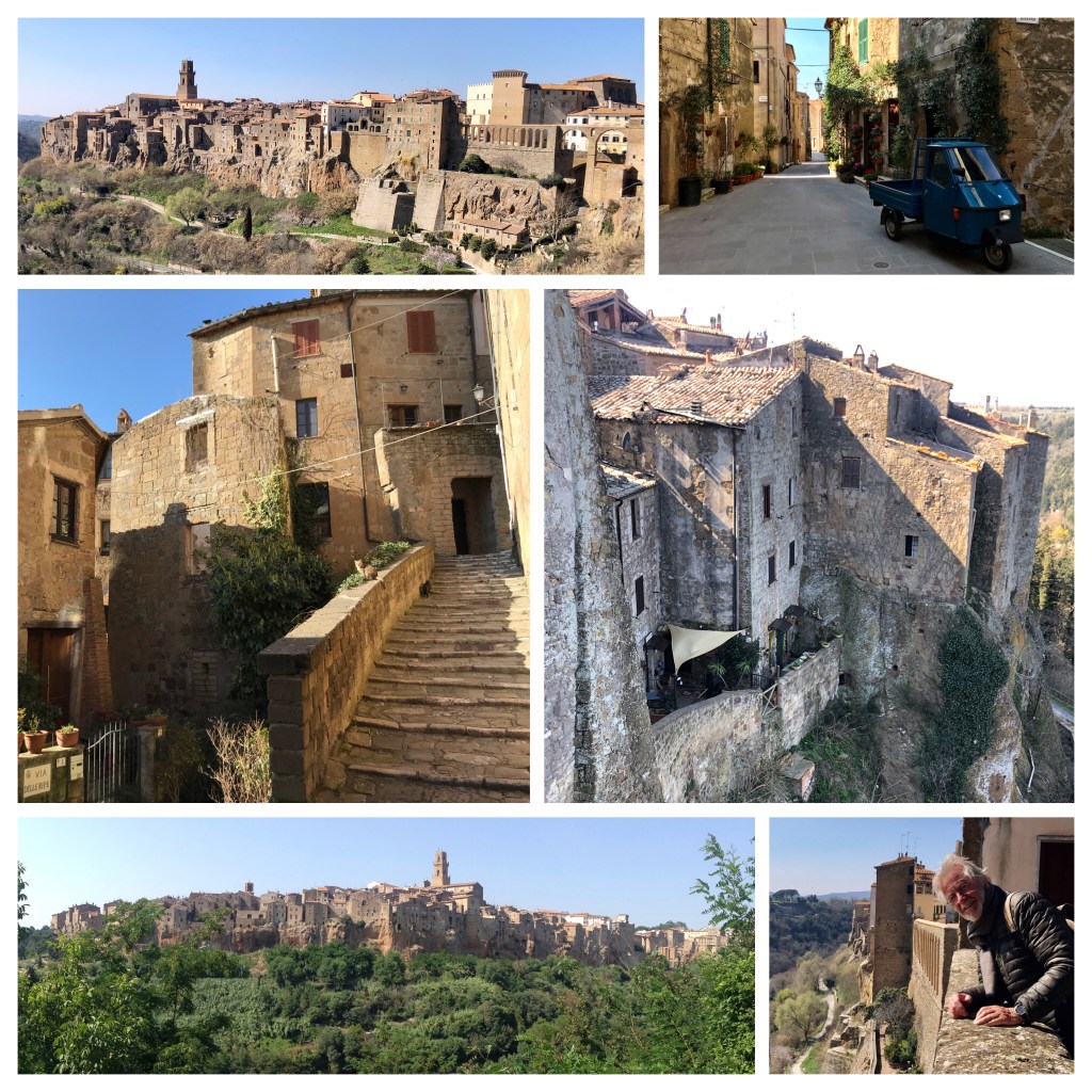 Das toskanische Städtchen Pitigliano präsentiert sich in spektakulärer Lage. Der mittelalterliche Stadtkern thront auf einem massiven Sockel aus Tuffstein. Die meisten Gebäude wurden aus diesem braungrauen Gestein errichtet, einige sogar aus dem Sockel herausgemeißelt. So wirkt Pitigliano von weitem wie eine überdimensionale Sandburg.