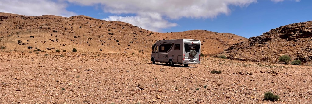Die Anti-Atlas-Gebirgslandschaft im Süden von Marokko ist geprägt von großen Granitfelsen und fast vegetationslosen Steinwüsten. Wir haben während unserer Tour durch die Stein- und Geröllwüsten, umsäumt von steilen Bergen, oft das Gefühl, uns in einer Mondlandschaft zu bewegen.