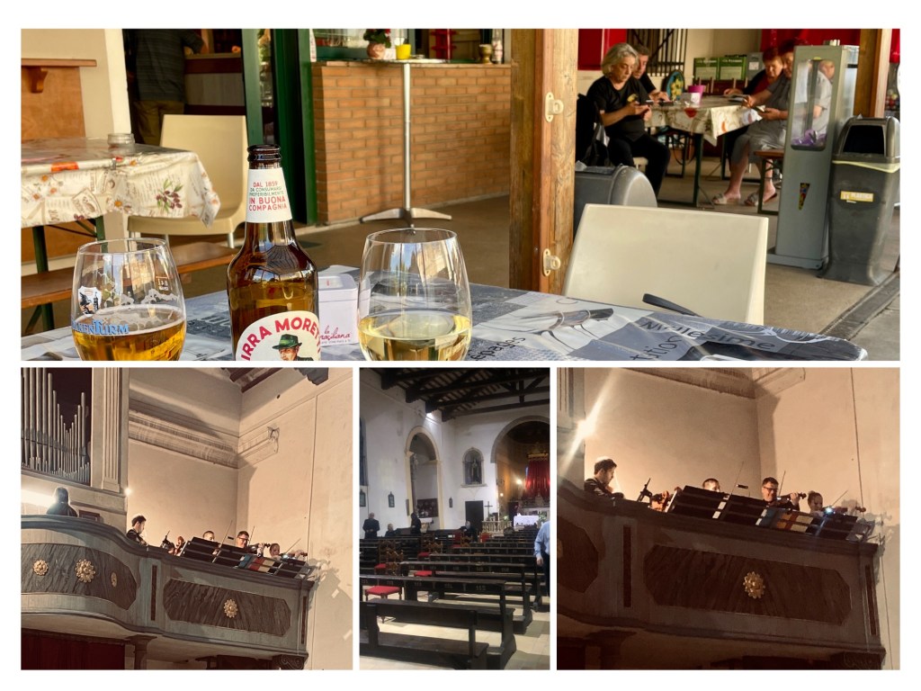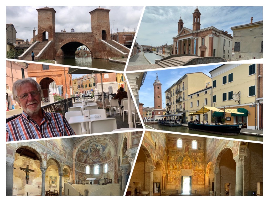 Eine Besichtigung einer der ältesten Universitäten Europas ist leider nicht möglich, da die Zugänge aufgrund einer studentischen Großdemonstration gesperrt sind ☹️. Gerne hätten wir das Anatomische Theater betreten. Gemeint ist ein um einen Seziertisch zentrierter Hörsaal mit ringförmig angeordneten steil ansteigenden Zuschauerplätzen, der 1595 eingeweiht wurde.Mit dem Fahrrad fahren wir durch Padua, um weitere Highlights zu entdecken. In der Collage sind es der Palazzo della Ragione, in dem sich ein 82x27m großer Ratssaal sowie im Gewölbe darunter verlockende Delikatessenmärkte befinden. Ein Cappuccino in dem berühmten Café Pedrocchi rundet die Tour ab.Markttag in Chioggia. Die Lagunenstadt erinnert mit ihren Inseln, Brücken und Kanälen an Venedig, ist aber weitaus weniger touristisch frequentiert als die ruhmreiche große Schwester, die wir auf einer unseren letzten Reisen besucht haben. Der Fischfang prägt hier den Alltag.Für das anstehende Pfingstwochenende sind an der Küste Kolonnen an Wohnmobilen zu erwarten. Im Hinterland finden wir in dem kleinen Ort Santamaria In Punta am Po einen ruhigen und sogar kostenlosen Stellplatz. Von hier aus unternehmen wir Fahrradtouren entlang des Flusses.Das Dorf bietet nicht nur gute Radfahrmöglichkeiten, sondern auch nach einem Sundowner in der Dorfbar ein Konzert von Vivaldi mit Orgel und Streichern in der kleinenKirche👍Comacchio ist der letzte Ort im Podelta, den wir erkunden wollen. Auch diese Stadt war einst Lagunenstadt. Davon zeugen heute Kanalbrücken, verschiedene Palazzi sowie die Cattedrale di San Cassiano mit Fresken und Ölgemälden von Biagio Bovi aus dem 17. Jahrhundert.