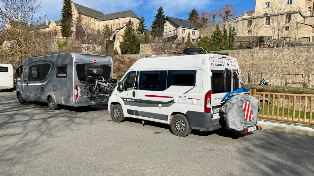 Da wir nun ohne unser treues Fahrzeug dastanden, musste ein neuer Plan her. Am vierten Tag unserer ungeplanten Odyssee fuhren wir per Zug und Taxi nach Toulouse, wo wir einen Leihwagen übernahmen. Alles, was wir noch aus dem Wohnmobil retten konnten, wurde bis zur Decke verstaut – inklusive unserer Falträder.