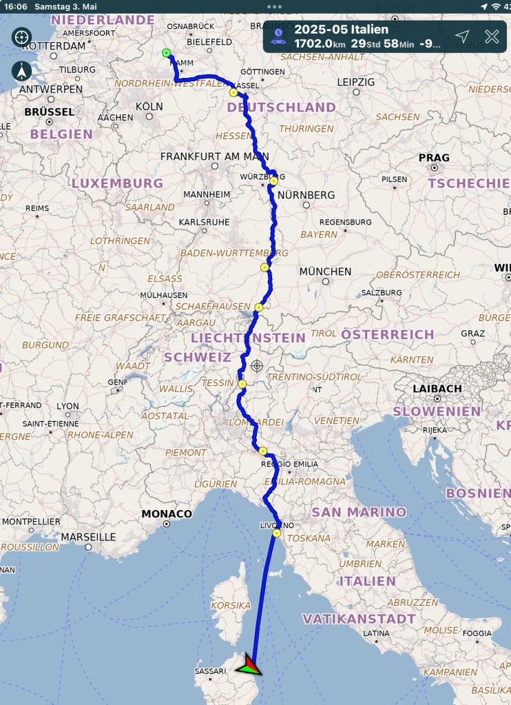 Die Schweiz wollen wir ohne Zwischenstopp durchqueren. Wir benötigen trotzdem eine Jahresvignette für 44€ 🙁. Erspart blieb uns aber eine österreichische Vignette, weil das Stück Autobahn zwischen der Grenze und der Ausfahrt Diepoldsau mautfrei ist.