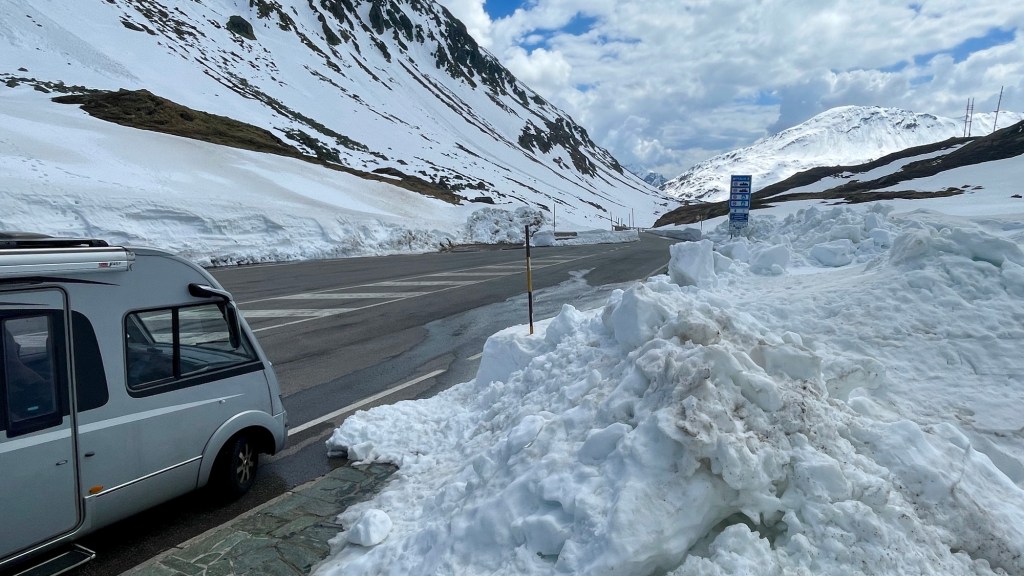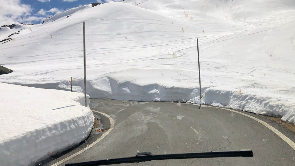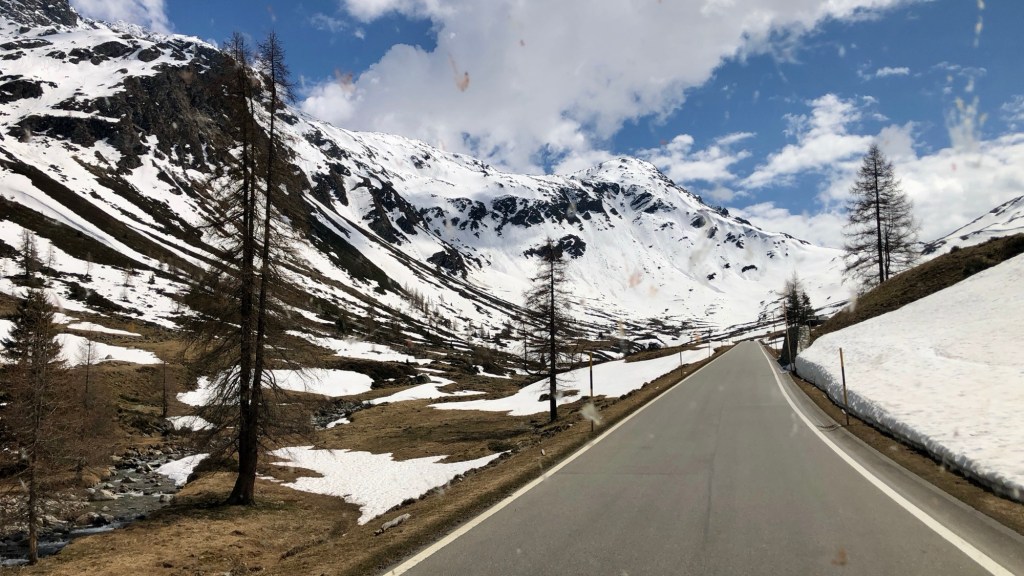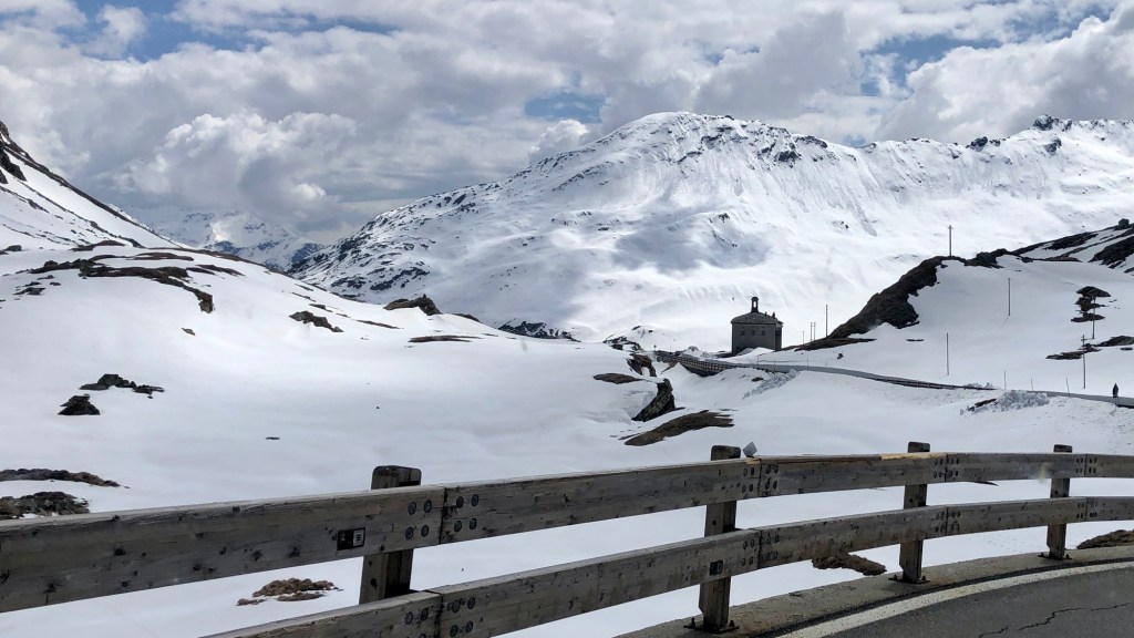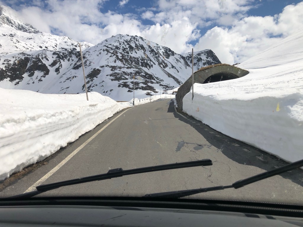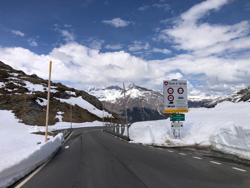 Ein kleines Highlight ist die Fahrt über den Splügenpass (2.114 m). Die 40 km lange Passstraße mit 72 zum Teil sehr engen Kurven ist die Verbindung von Graubünden über die italienische Provinz Sondrio zum Comer See.