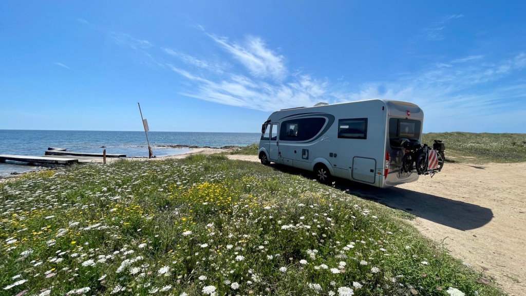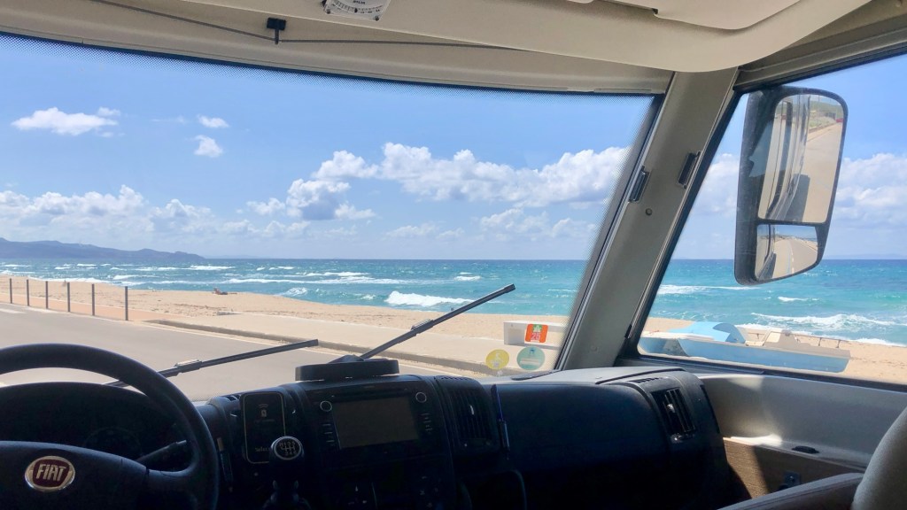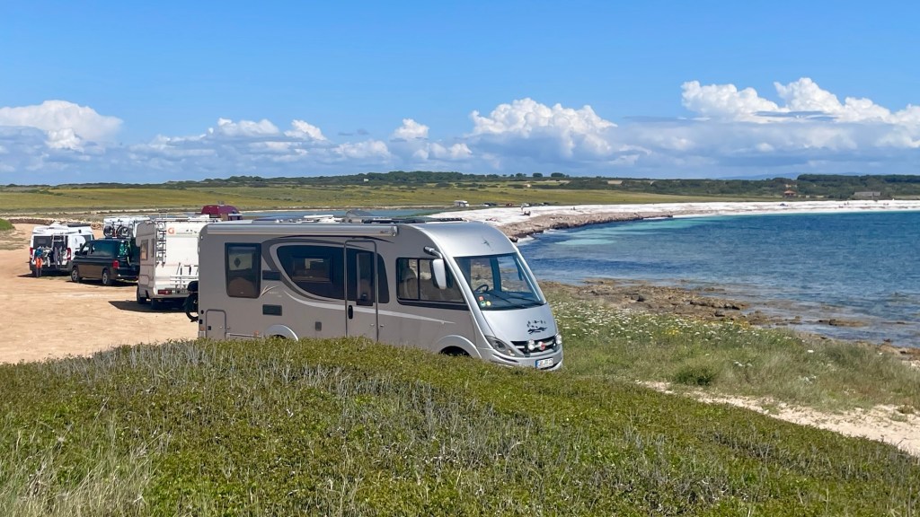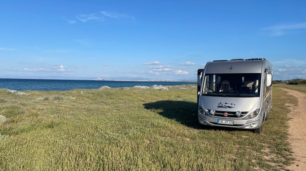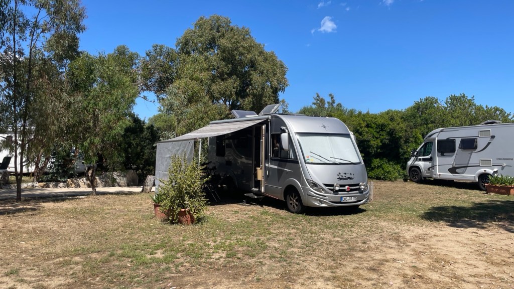 Dennoch hat uns Sardinien bisher nicht gepackt. Nahezu überall ist es verboten, Stühle vor das WoMo zu stellen. Es bleibt nur der Gang zum Strand, wo sich in der Regel Fliegenschwärme auf die nackte Haut setzen. Offizielle Stellplätze gibt es nur wenige, diese sind meist überteuert. Bereits die Ver- und Entsorgung schlägt mit 10-20€ zu Buche ☹️.