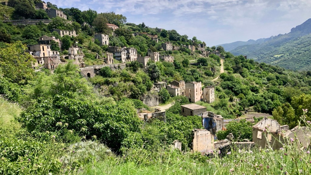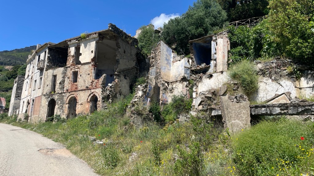 Auf der Weiterfahrt Richtung Ostküste stoßen wir auf Gairo Vecchio. Nach langer Trockenheit 1951 lösten heftige Unwetter einen gewaltigen Erdrutsch aus, der Teile des Dorfes mit sich riss und unter sich begrub. Das Dorf musste aufgegeben werden.
