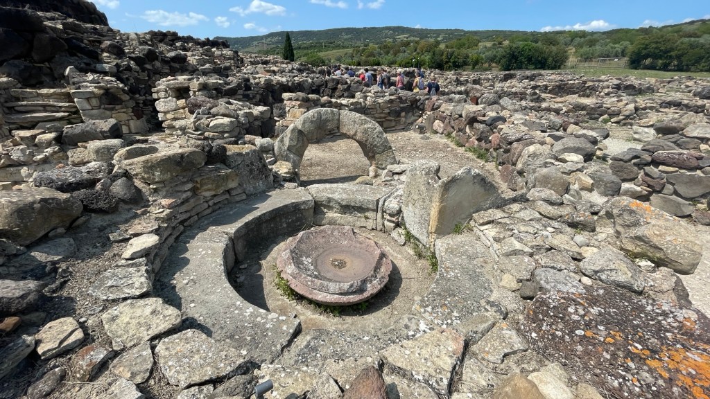 Nuraghen sind zentrale Turmbauten der Nuraghenkultur (etwa 1600–400 v. Chr.), um die sich ein Hüttendorf gruppiert. Die Nuraghe in Barumini war ursprünglich 18m hoch und wurde aus Basaltblöcken errichtet. In einer späteren Besiedlungsphase wurde diese durch vier Ecktürme ergänzt, um den Innenhof mit Brunnen und Lagerräumen zu schützen. Die archäologische Stätte Su Nuraxi zählt seit 1997 zum Weltkulturerbe der UNESCO.