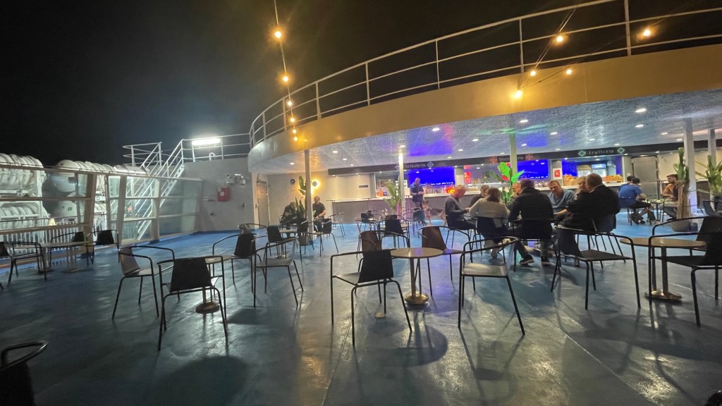 Unsere ersten Eindrücke sorgen für eine gute Stimmung. In der Nähe des Fährhafens finden wie für die erste Nacht ein schönes Plätzchen. Fast alleine verbringen wir den Tag in dieser kleinen Bucht. Zu unserer Überraschung finden wir hinter den Dünen eine kleine Strandbar, so dass der 🍷Sundowner🍺🥜 für heute gesichert ist.