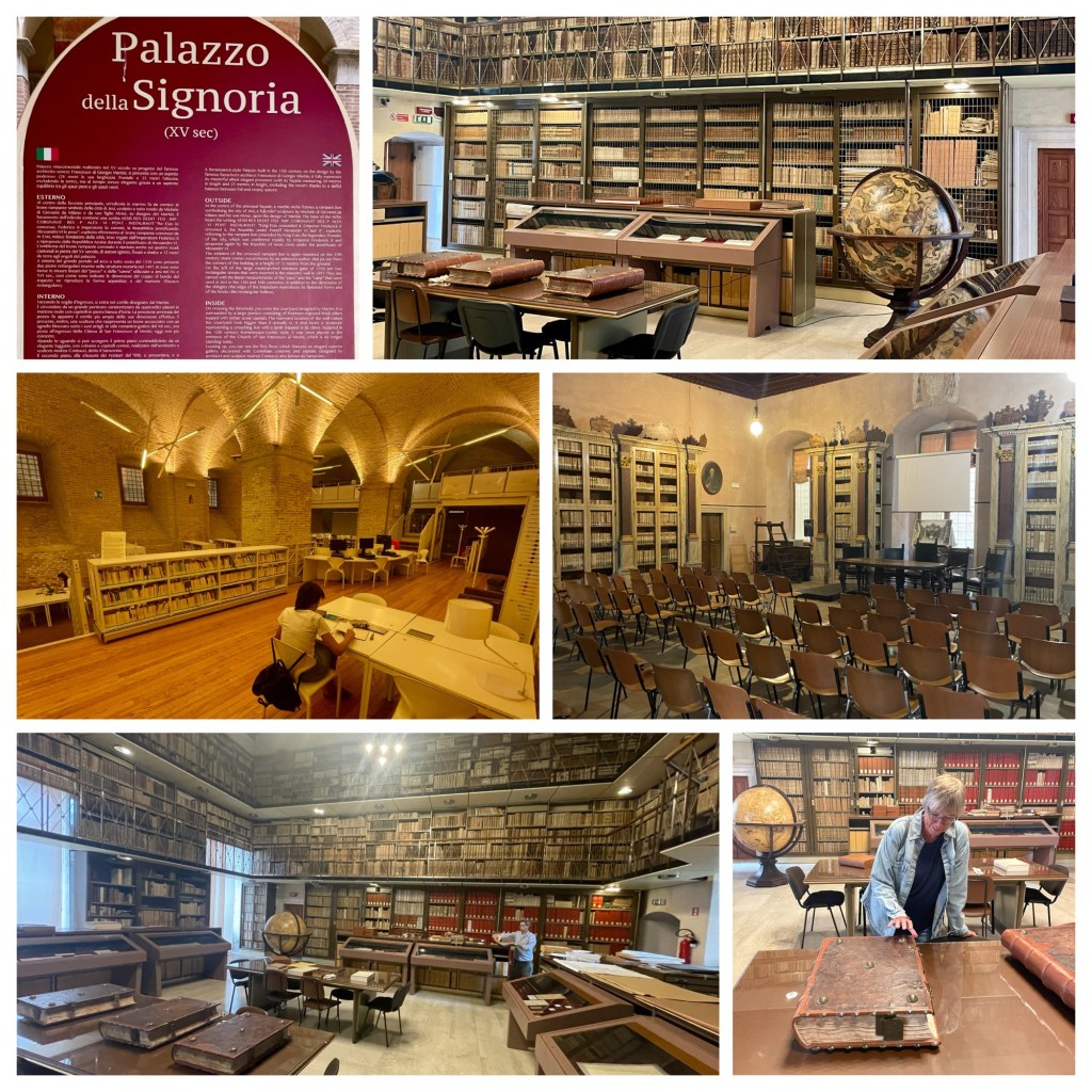 Wir konnten den SALA Pianettiana besichtigen, in dem die seltene und wertvolle Büchersammlung der gleichnamigen Familie untergebracht ist. Im Inneren des Saals befinden sich neben Bänden aus dem fünfzehnten und zwanzigsten Jahrhundert auch zwei prächtige Globen aus dem späten siebzehnten Jahrhundert, die von dem berühmten venezianischen Kartographen Vincenzo Coronelli stammen.