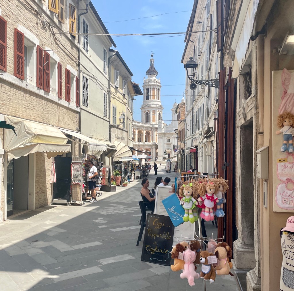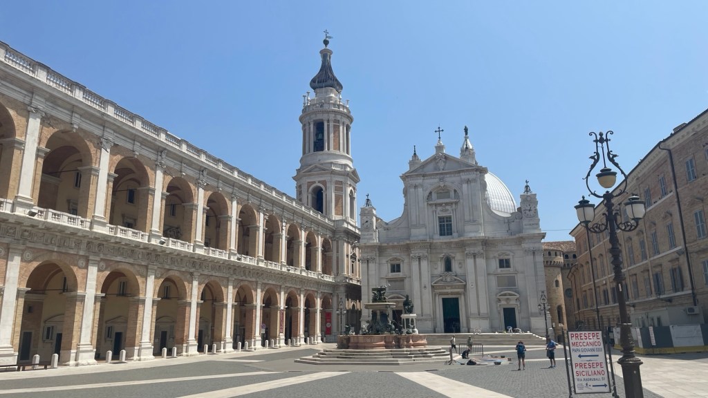 Nach dem Petersdom in Rom ist Loreto der zweitwichtigste Wallfahrtsort in Italien und einer der wichtigsten der katholischen Welt. Die Basilika vom Heiligen Haus beinhaltet die Santa Casa , der Legende nach das Heilige Haus von Nazareth, in dem Maria aufwuchs und die Verkündigung empfing.