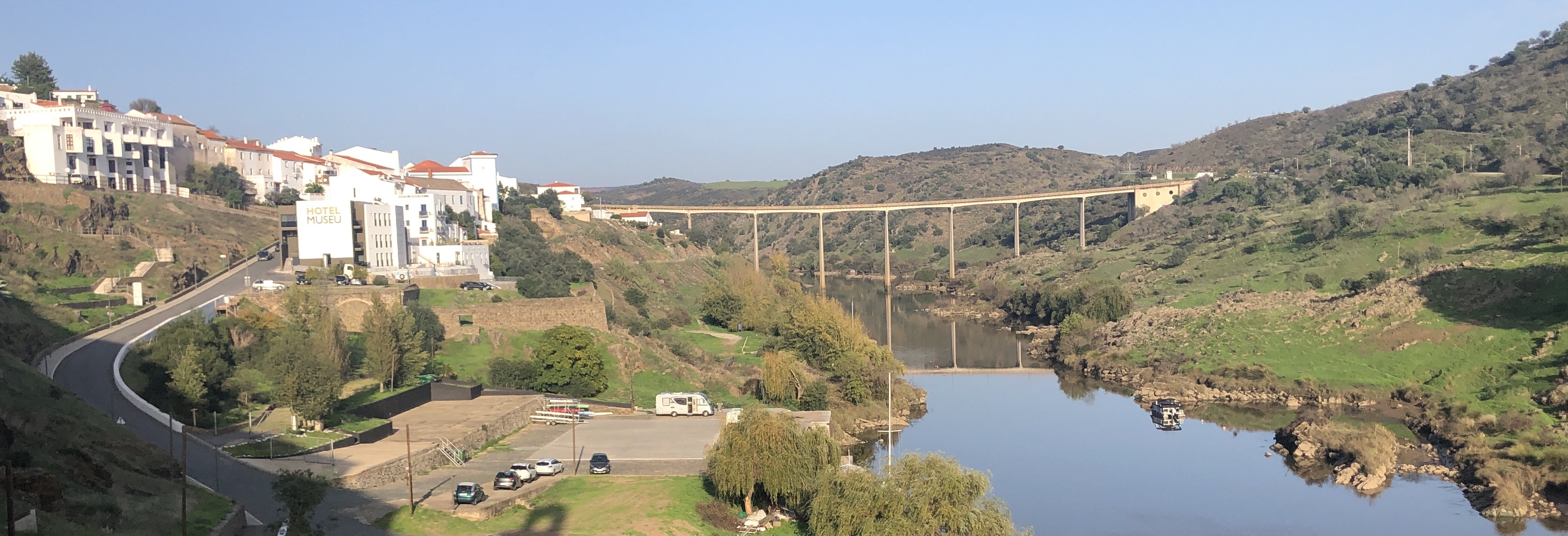 Ein ruhiger Übernachtungsplatz in Mertola am Río Guadiana.